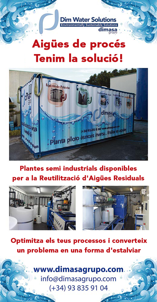 Sempre amb el compromís ferm per la innovació i el respecte pel medi ambient, Dimasa Grupo ha millorat la seva línia de productes per a dessalació. Els nostres filtres de cartutx, producte del qual tenim importants referències, han despertat l’interès de tots els assistents. A més, van tenir un especial protagonisme les plantes pilot per a l’optimització de processos d’aigües residuals industrials, amb les quals podrà recuperar gran part de l’aigua dels teus residus, tal com ja hem fet per plantes autoritzades per al tractament de residus industrials i per a importants empreses del sector alimentari.