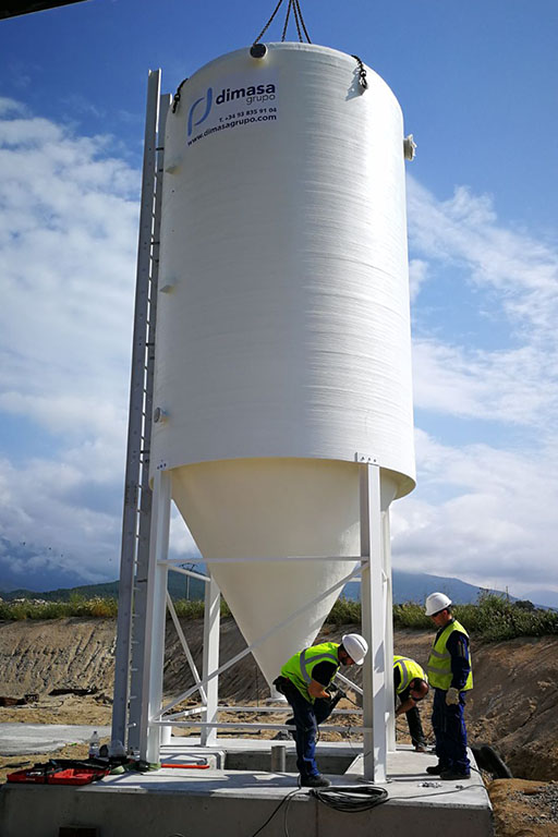 Dimasa Grupo va subministrar un espessidor de fangs de polièster reforçat amb fibra de vidre, amb una capacitat de 28m3, per a la nova estació depuradora de Lanzahíta, una petita localitat avilesa. Aquest gran equip de 3 metres de diàmetre i una alçada propera als 7 metres, està equipada amb campana tranquil·litzadora, Canal Thompson perimetral, i escala de gat amb barana, també en PRFV.