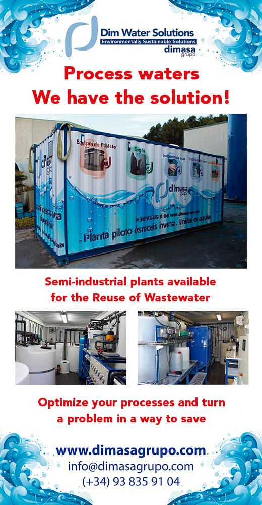 Always with a firm commitment to innovation and respect for the environment, Dimasa Grupo has improved its product line for desalination. Our cartridge filters, the product of which we have important references, have aroused the interest of all attendees. In addition, the pilot plants for the optimization of industrial waste water processes were of special importance, with which you can recover much of the water from your waste, as we have already done for plants authorized for the treatment of industrial waste and for important companies in the food sector.